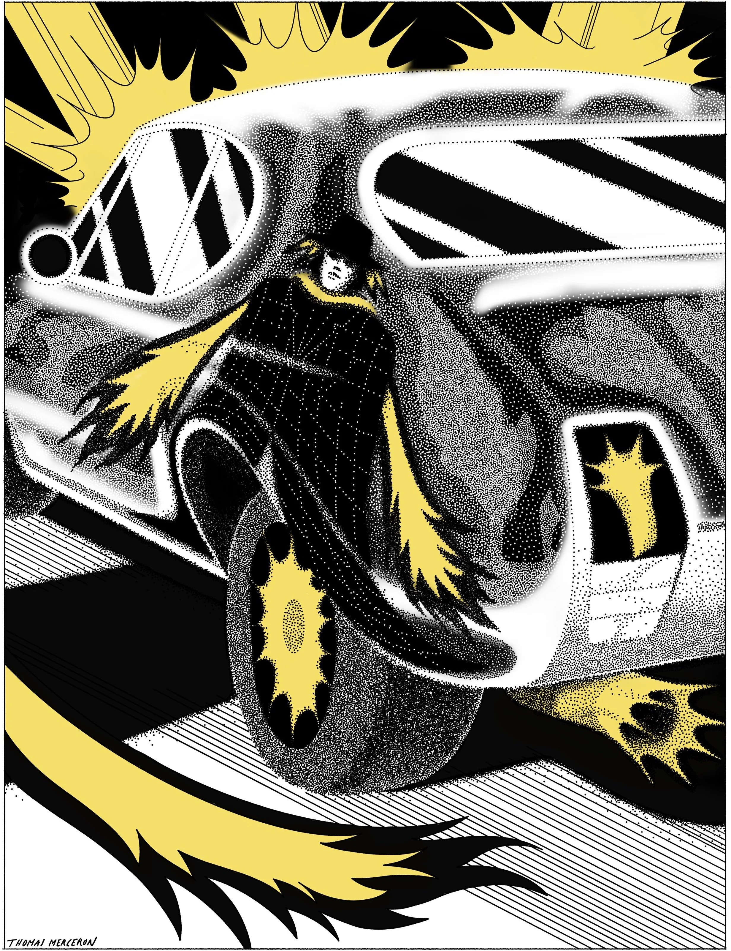 Par cela, c’est le sentiment d’être déconnecté que j’ai voulu dessiner. Je voulais parler d’une richesse impalpable, celle qui glisse quand on a tout, celle qui nous dit qu’on a maintenant plus grand chose.