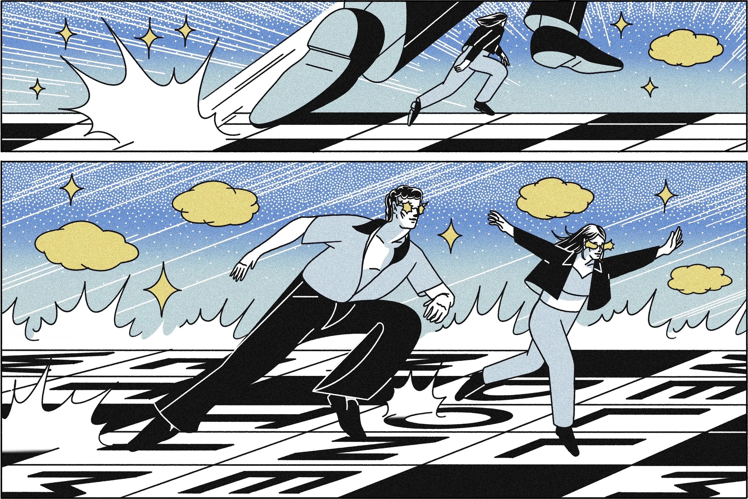Réalisation d’une série de dessins pour The New York Times, représentant les différentes phases émotionnelles que nous traversons lorsque nous jouons aux mots croisés :